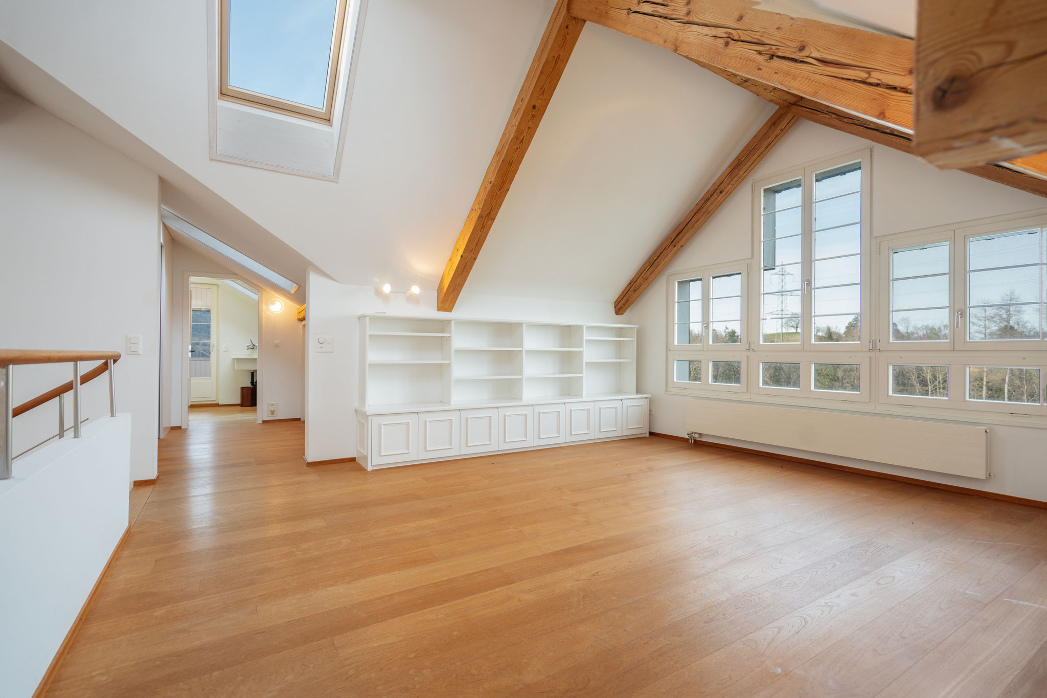 Dank privatem Aussenzugang wirkt Ihr zukünftiges Domizil wie ein Haus im Haus. Es umfasst über 235 m² im ersten Ober- und im Dachgeschoss. Grosszügige Weite, moderner Komfort und ein hoher