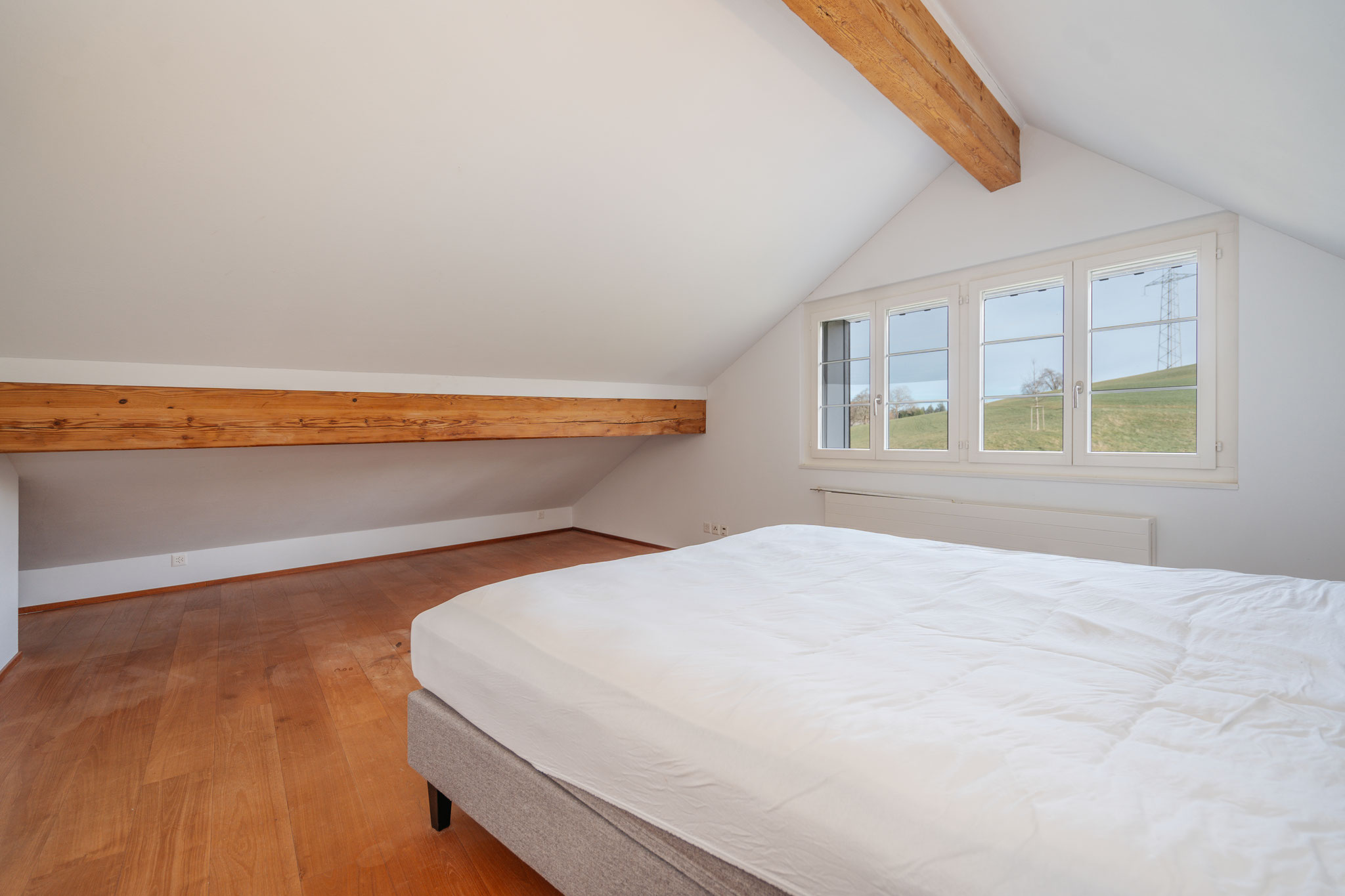 Parkett sowie frisches Weiss trifft. Der Landhausstil der Küche ist eine gelungene Reminiszenz an die traditionelle Umgebung, während unter dem Dach rustikale Deckenbalken einen spannenden
