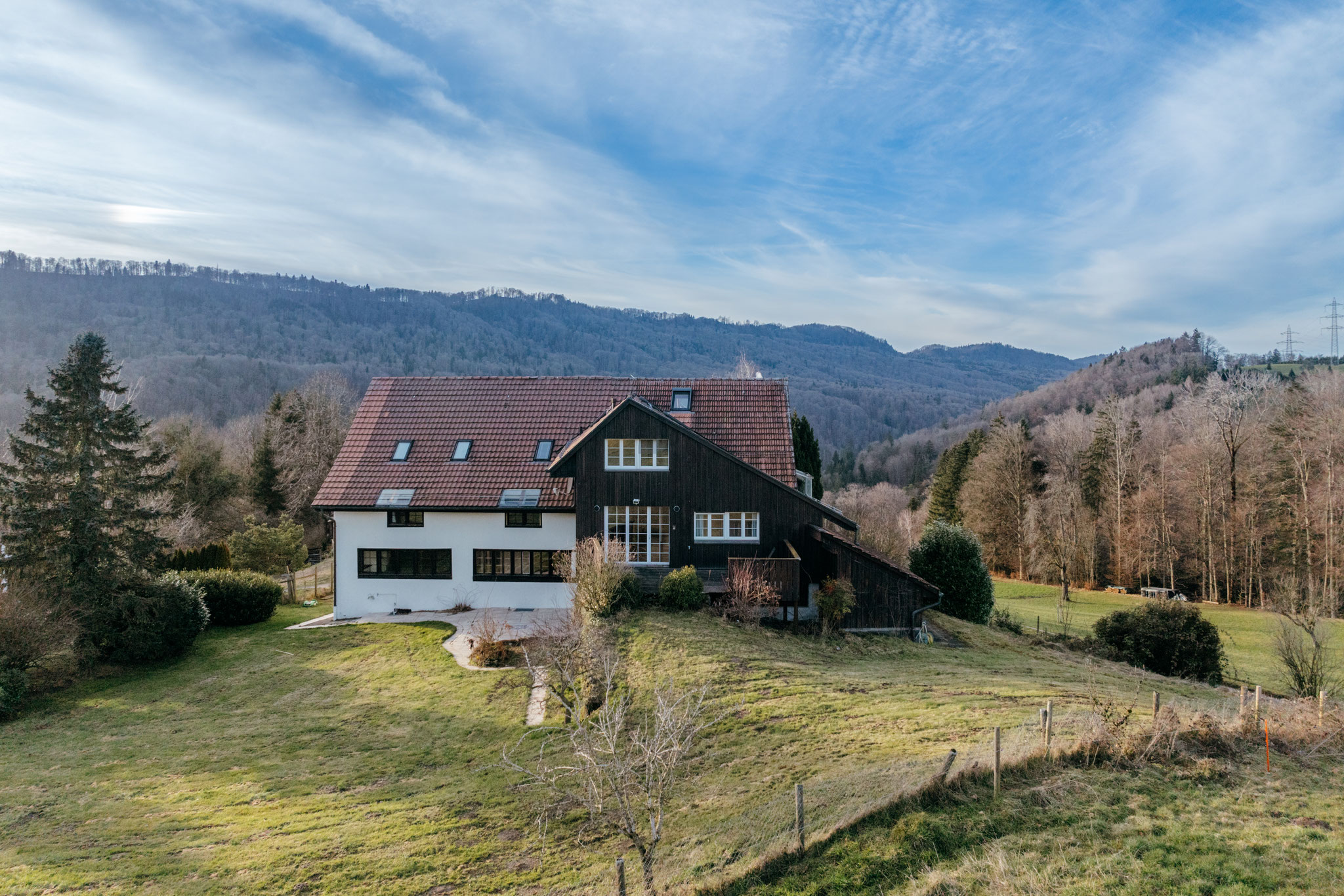 Garten. Der riesige Umschwung ist naturnah und pflegeleicht angelegt, sodass er nahtlos in die benachbarten Wiesen übergeht und dadurch fast unendlich scheint. Dank der Umzäunung können sich