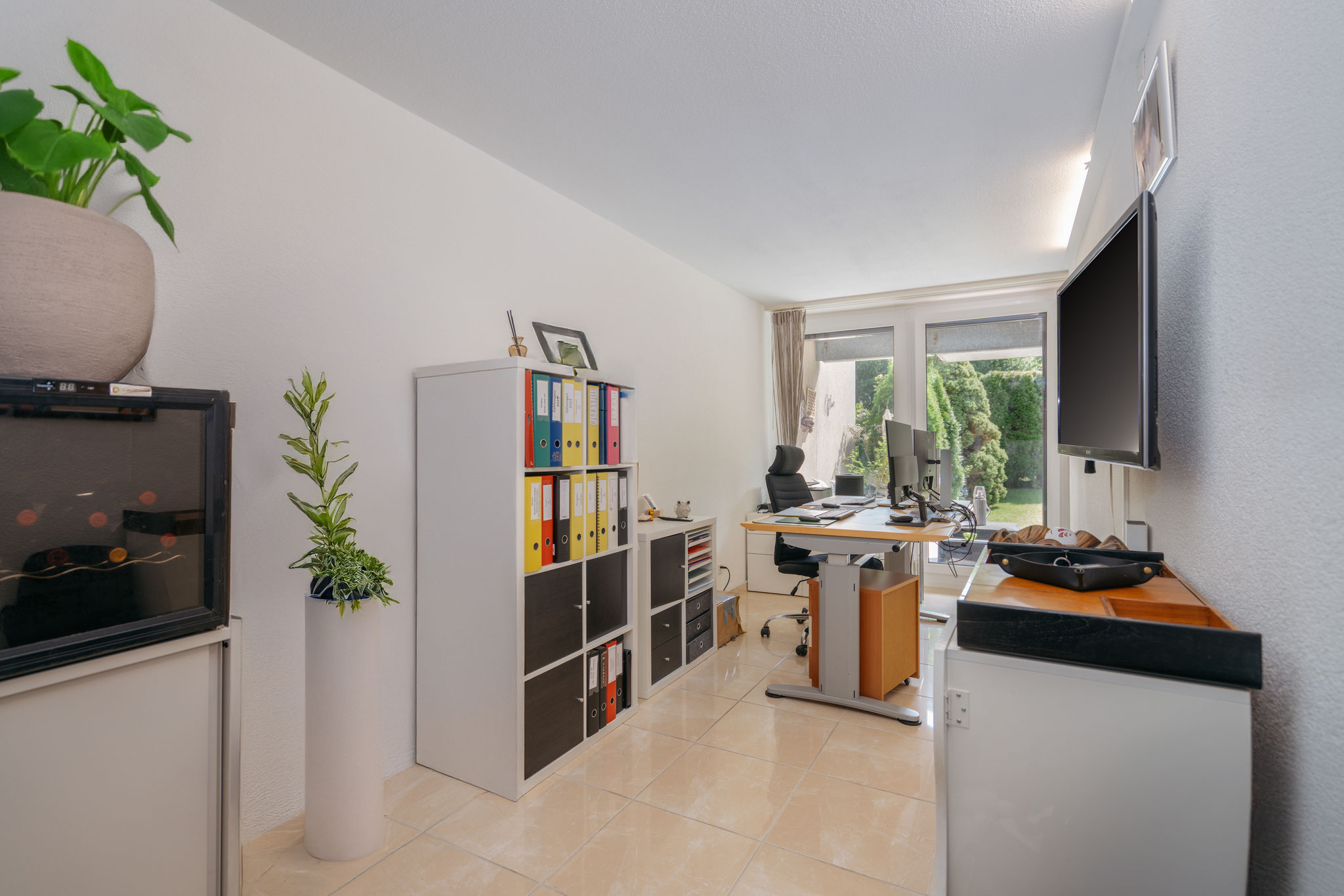 Garten und Wohnung wurden laufend unterhalten und präsentieren sich Ihnen bestens gepflegt: Küche und Bäder sind modernisiert und zeitgemäss ausgestattet, Fliegengitter und Alarmanlage tragen zu