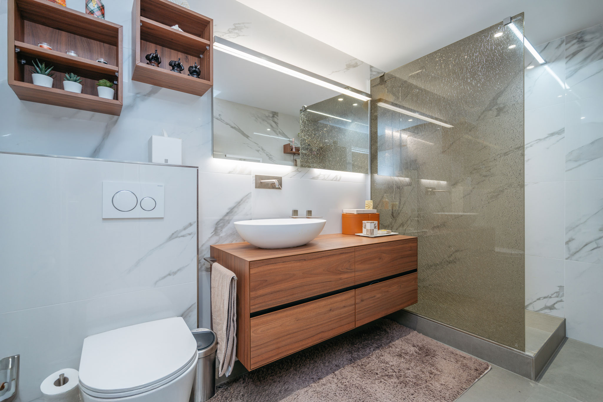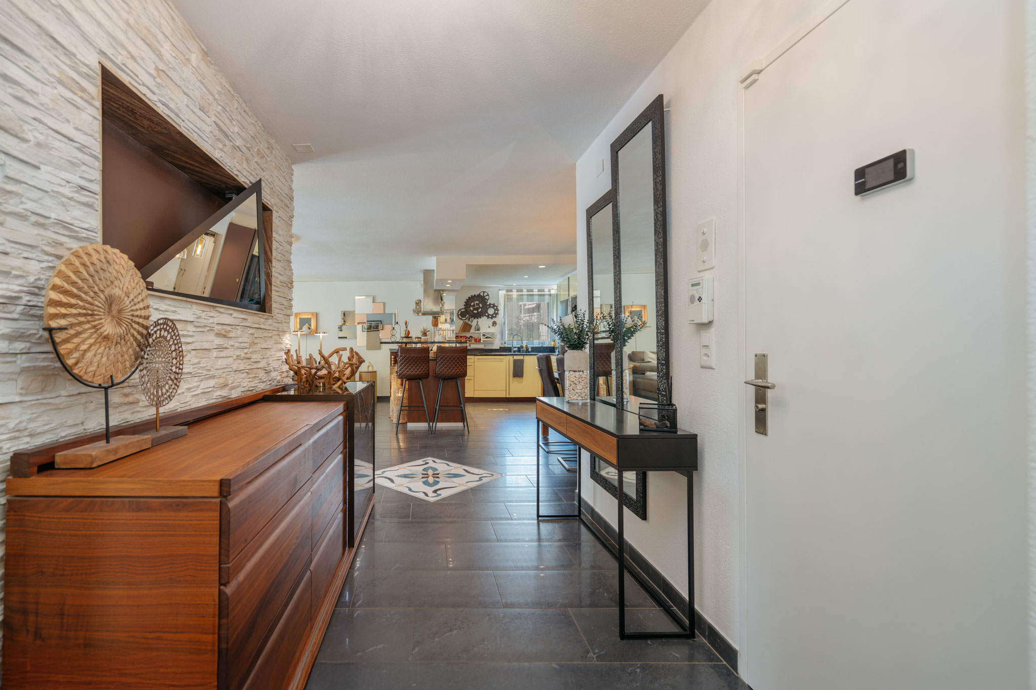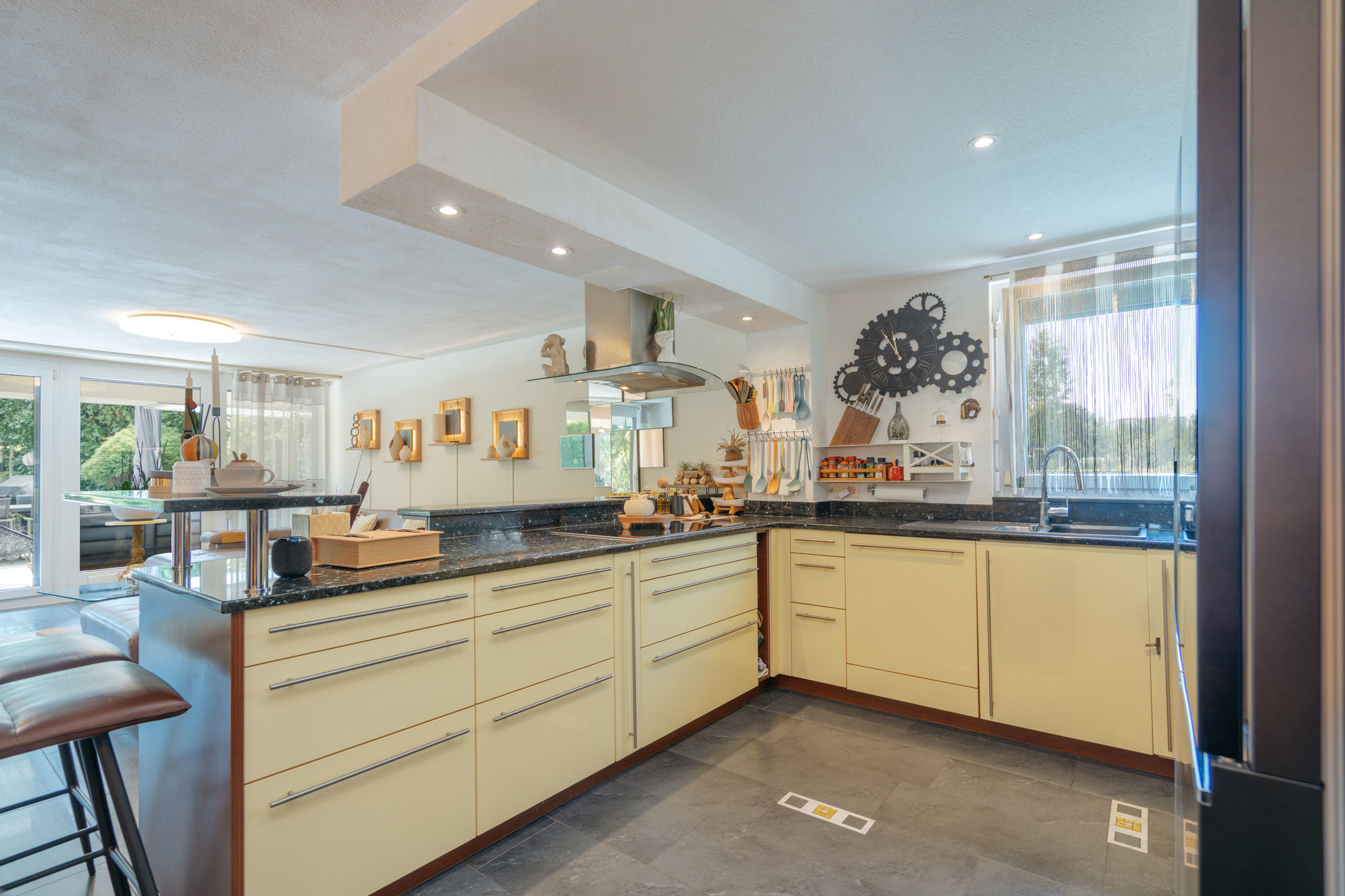 integrierter Küche erstreckt sich über grosszügige 54 m² – ein Ort zum Leben, Lachen, Geniessen und Zusammensein. Ein zusätzlicher Raum bei der Küche hält Platz für Vorräte, die eigene Waschküche
