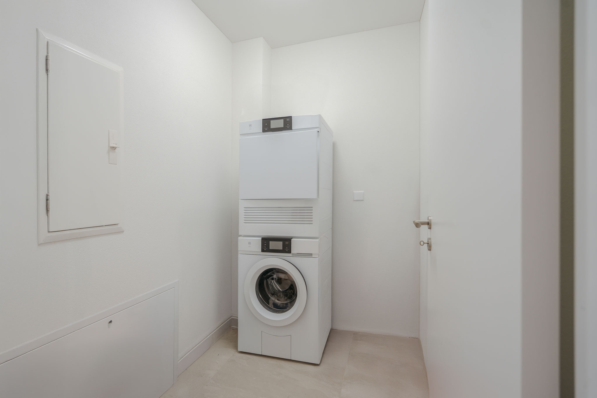 umfassende Hobbyraum auf der gleichen Ebene an, der sowohl von der Wohnung wie auch vom Treppenhaus her zugänglich ist. Als praktisch im Alltag erweist sich das Reduit mit Waschturm, das Ihnen